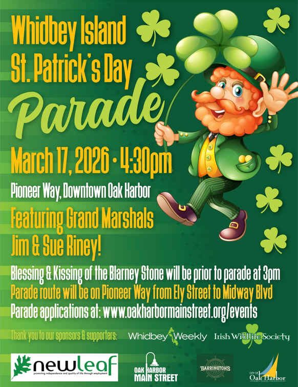 Come line the streets and join the fun at the Whidbey Island St. Paddy’s Day Parade along Pioneer Way! Expect a lively splash of green, local flair, Irish spirit, and plenty of smiles as the parade rolls through Oak Harbor.